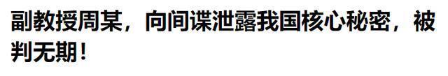 参考资料: 光明网《副教授周某,向间谍泄露我国核心秘密,被判无期!》